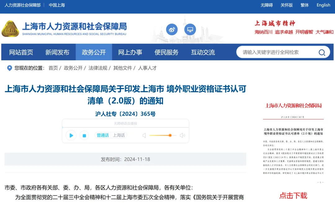 | 上海 | CMA成功纳入《上海市境外职业资格证书认可清单(2.0版)》,对应副高级职称 | https://rsj.sh.gov.cn/trsrc_17739/20241118/t0035_1428868.html |