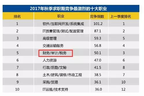 第二,2017年秋季全国竞争最激烈的十个职业,财务/审计/税务位列第五