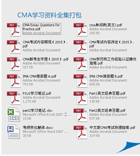 cma教材下载及学习资料大放送就介绍到这里了,希望能对你“射进临门一脚”有帮助。CMA含金量高、认可度广,报考物超所值,有了上面这套法宝后,还等什么呢?现在就是备考的**时机。